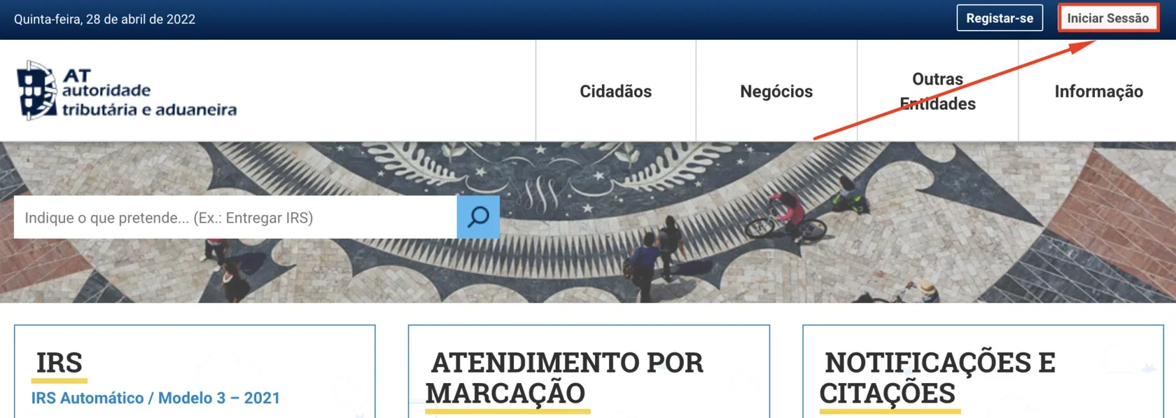 - Log in to the Portal das Finanças.